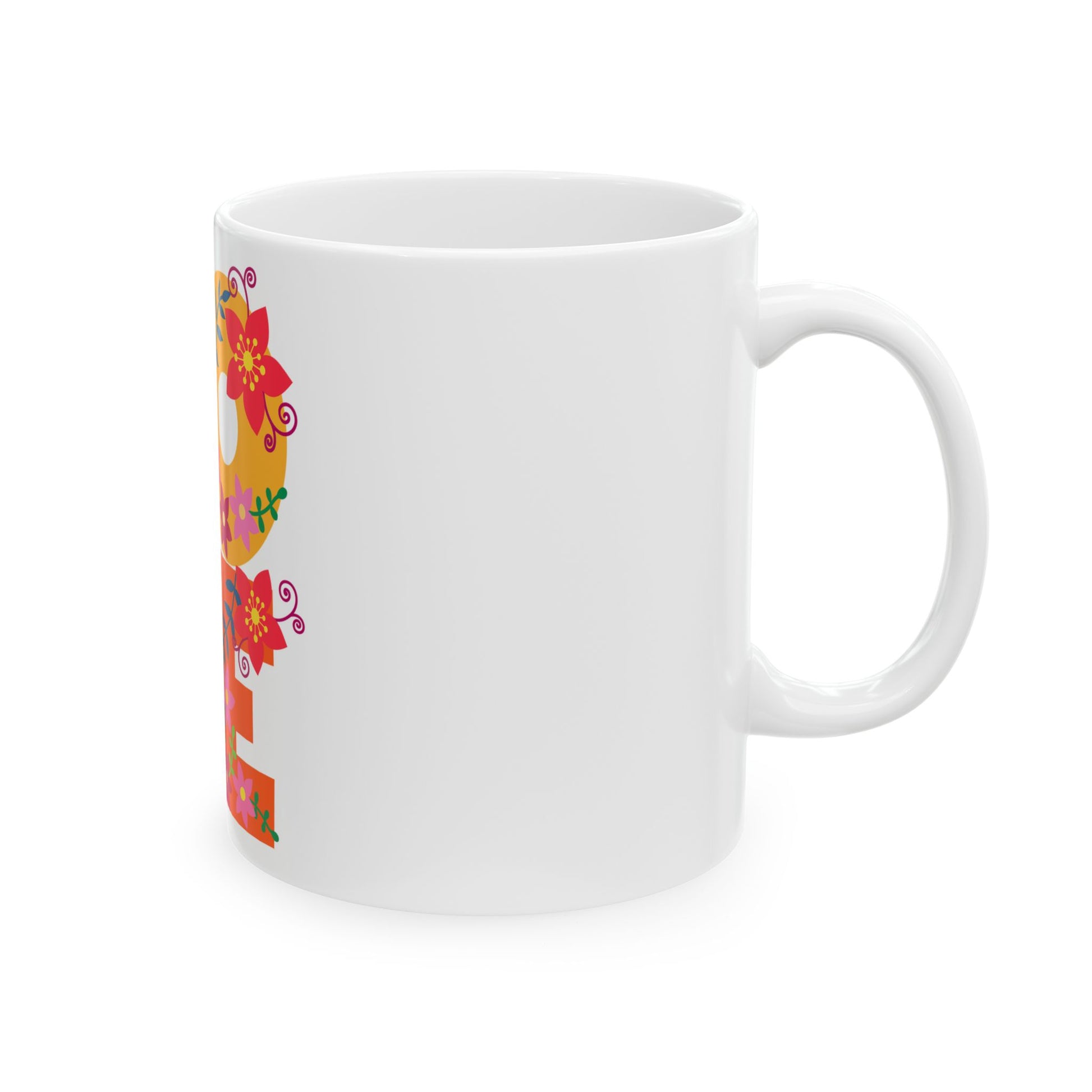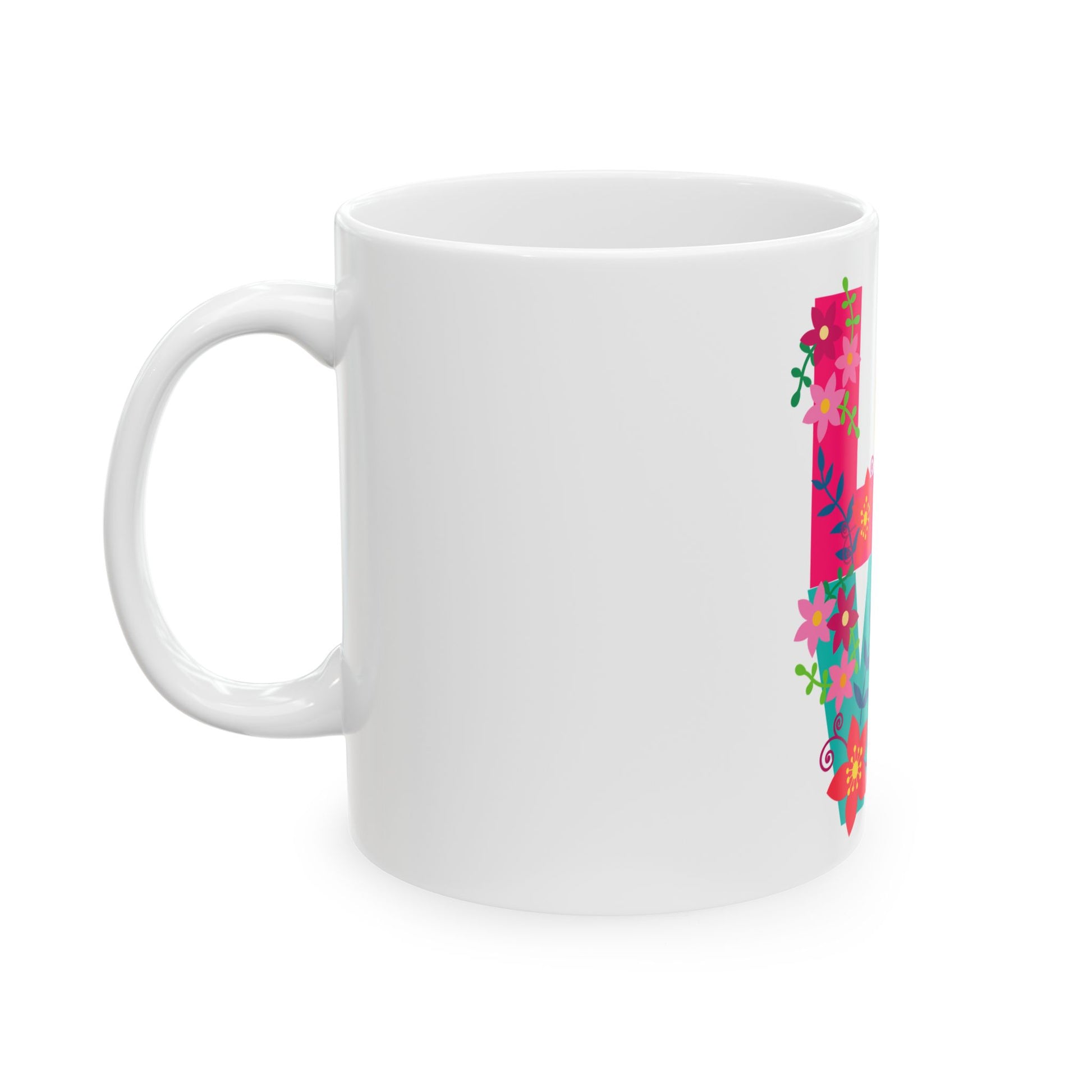A ceramic mug inspired by the floral gardens of Kauai, featuring vibrant colors that bring a touch of nature to your morning routine. Perfect for nature lovers and those seeking a peaceful atmosphere in their daily life. Ideal for gifting on occasions like birthdays, Mother's Day, or anniversaries.